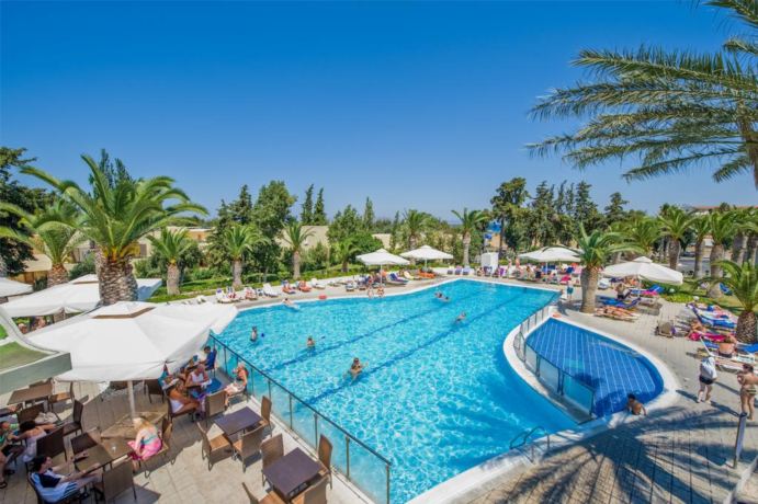 The hotel facilities include 24h reception, restaurant, bar, several pools, children’s pool, gym, table tennis, mini market, internet (extra charge) and parking. The guestrooms are equipped with bathroom (bath/shower), hair dryer, fridge, TV, telephone, safe (extra charge), Air-Condition and balcony/terrace. Premium sea view rooms of approximately 23 m2 are found in the main building. They all feature individual air conditioning unit, LCD TV with satellite reception TV channels, in room safe box, Wi-Fi internet access, in bathroom speaker with music channels, coffee & tea making facilities, first-rate bed mattress and excellent quality pillows, luxurious cotton linen, large cotton towels, cotton beach towels, bathrobes, slippers, cozy bathroom with a walk in shower, finest bathroom amenities, fridge and furnished balcony. Recently renovated in 2016.